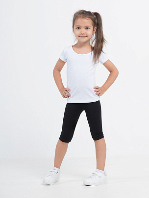Футболка для девочки с коротким рукавом. Вырез горловины круглый, окантован бейкой из основного полотна.