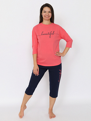 Пижама женская (футболка, брюки) охра