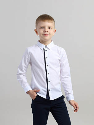 Рубашка классическая, полуприталенного силуэта, с длинным рукавом рубашечного покроя, с притачными манжетами, с застегивающейся шлицей рукава. Воротник обтачной с притачной стойкой.