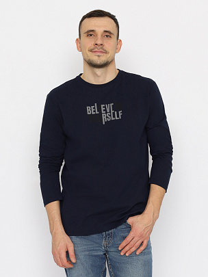 Джемпер мужской прямого силуэта с притачным поясом, рукава с манжетами, со спущенным плечом. Круглая горловина обработана узкой притачной обтачкой из рибаны с эластаном. Полочка декорирована принтом.