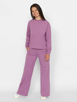 Стильный базовый спортивный костюм в стиле оверсайз (свободный крой) состоит из 2-х предметов: укороченный свитшот и брюки-палаццо с завышенной талией и расклешенные снизу. Костюм для женщин выполнен из футера без начеса. Элементы костюма можно носить как самостоятельные вещи. Укороченный свитшот можно комбинировать с джинсами, брюками, лосинами. Брюки-палаццо отлично смотрятся с футболкой, худи, топом или лонгсливом.