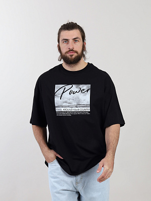 Футболка с коротким рукавом. Горловина круглая, обработана узким воротником из полотна с эластаном. Перед оформлен небольшим принтом.