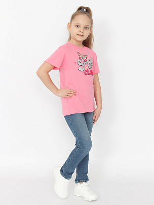 Футболка с коротким рукавом. Горловина круглая, обработана узким воротником из полотна с эластаном. Перед оформлен принтом с использованием краски с эффуктом "металлик".